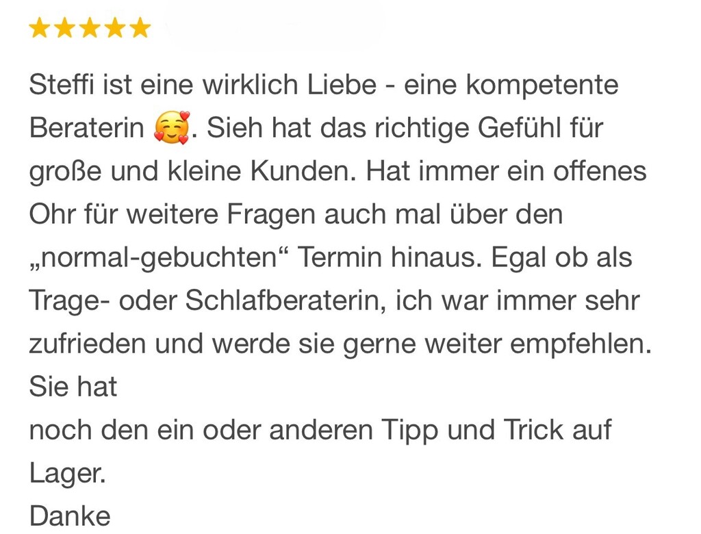 Stillen ist mehr als nur Nahrung. Es ist ein Gesamtpaket aus Nähe, Geborgenheit, Entspannung und vielem mehr. Auf dieser Basis besprechen wir passende Lösungen für eure Nächte. Selbstverständlich praxisnah, mit viel Empathie und Raum für eure Fragen!