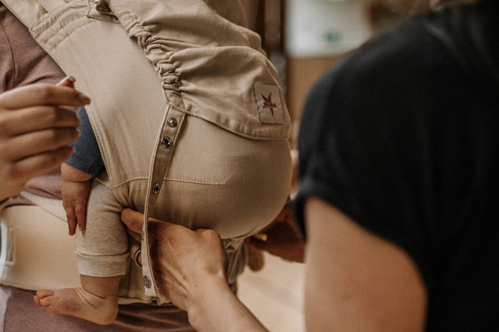 Wir wählen eine passende babytrage UND du lernst, wie du dein Baby sicher hineinsetzt und wieder herausnehmen kannst.